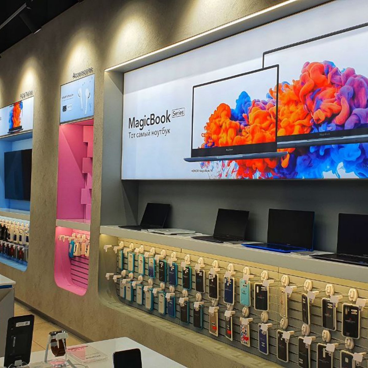 Каждая деталь — от фактуры и текстуры до цветовой гаммы — была продумана так, чтобы идеально передать современный стиль HONOR. Наше решение сочетает прочность, эстетику и функциональность, что позволило воплотить дизайн-проект на высшем уровне.